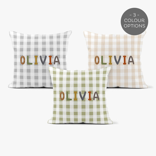 BABY SAFARI GINGHAM PERSONALISED SCATTER CUSHION