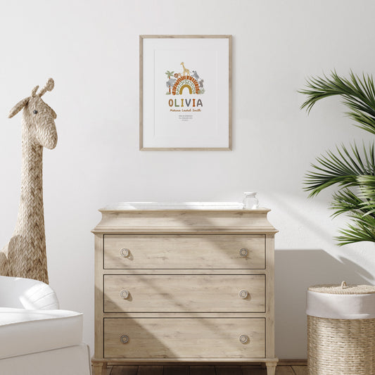 BABY SAFARI ANIMAL PERSONALISED BIRTH PRINT