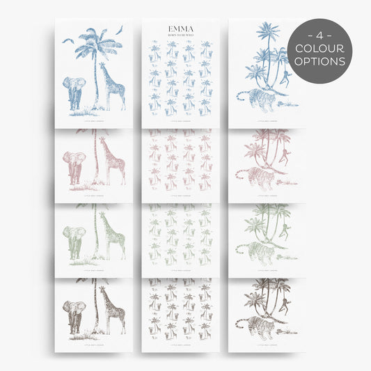 SAFARI TOILE DE JOUY SET OF THREE PERSONALISED ART PRINTS