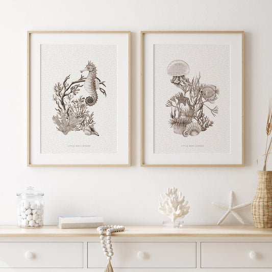NEUTRAL CORAL SET OF 2 ART PRINTS