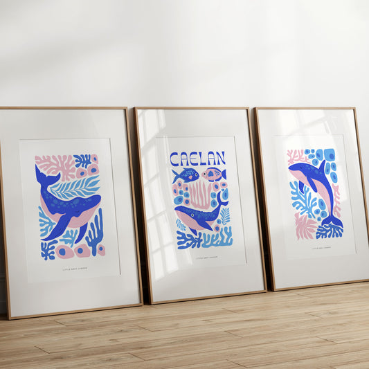 SEA WORLD SET OF THREE PERSONALISED ART PRINTS