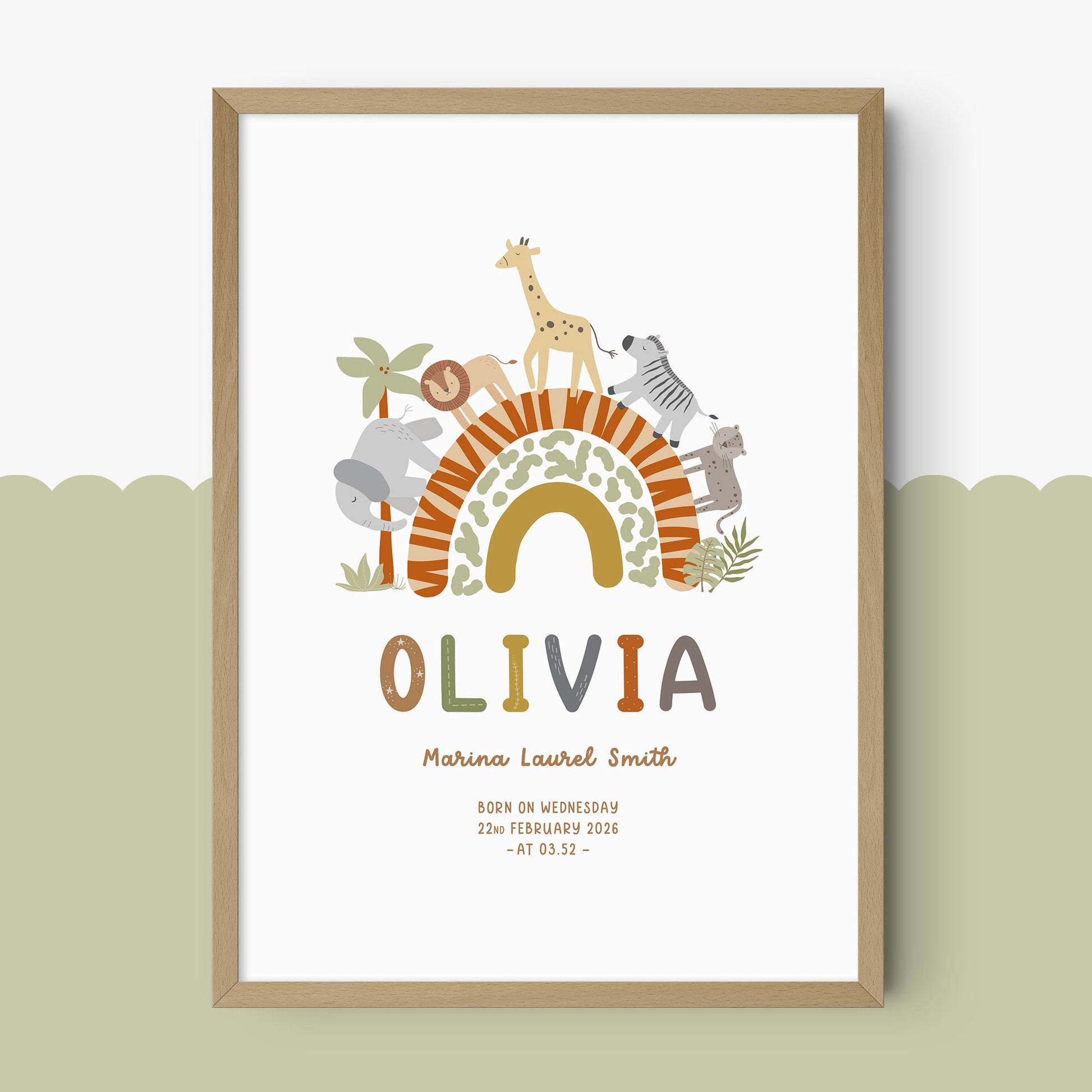BABY SAFARI PERSONALISED BIRTH DETAILS ART PRINT